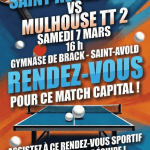 Samedi 7 mars - 2ème journée de championnat par équipe. L'équipe 1 reçoit Mulhouse