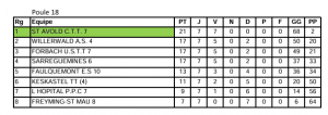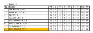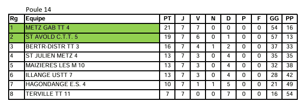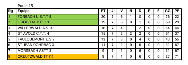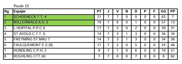 Soulignons l’honorable performance du CTT de Saint-Avold, qui compte trois équipes montant au niveau supérieur et aucune descente. Félicitations à tous les compétiteurs pour leurs performances exceptionnelles et leur engagement. Continuons sur cette lancée pour la phase suivante !